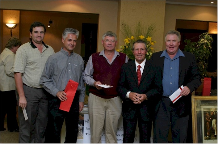 From left to right: Johan Engelbrecht [Vodacom]; Andre Cruse [Professional Golfer]; Paul Inglesby [Telkom]; Gary Player & Bill Hearmon
